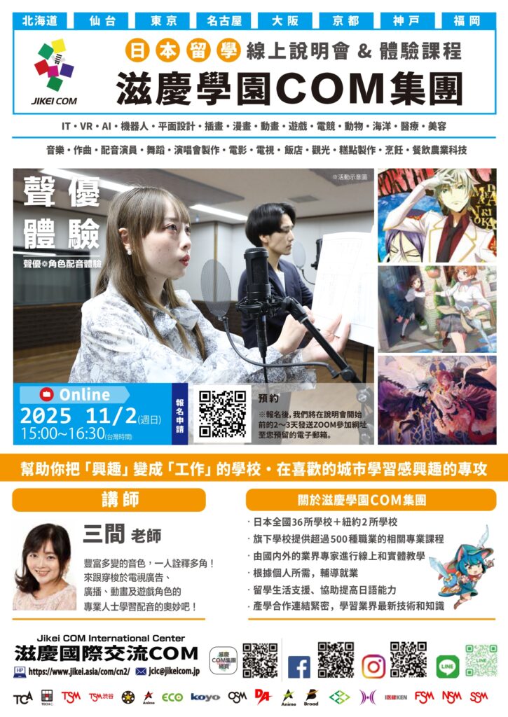 讓你的聲音,走進角色的世界——11/2滋慶學園COM_線上說明會&聲優體驗課程🥰