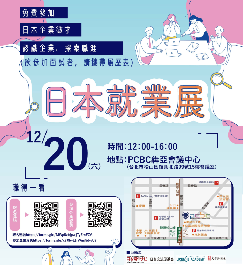 今年 12 月,日本企業直接來台「三場連續徵才」,免費參加!