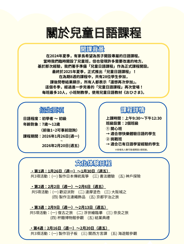 兒童(7~12歲)課程(大阪校):https://reurl.cc/eVbGRQ