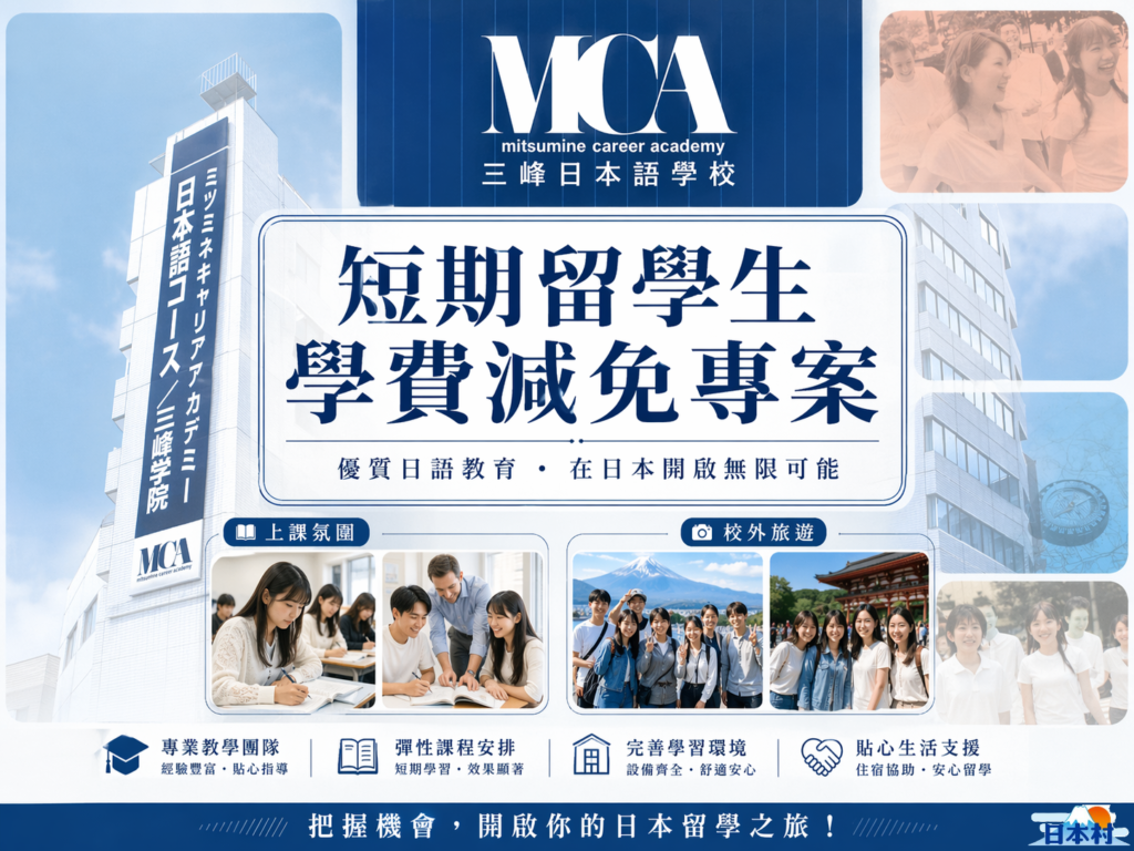 短期留學生學費減免專案~(東京)MCA三峰日本語學校~
