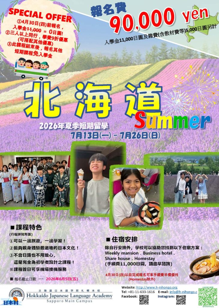 🌻【2026北海道夏季(2週)短期遊學|早鳥優惠4/30止】🌻